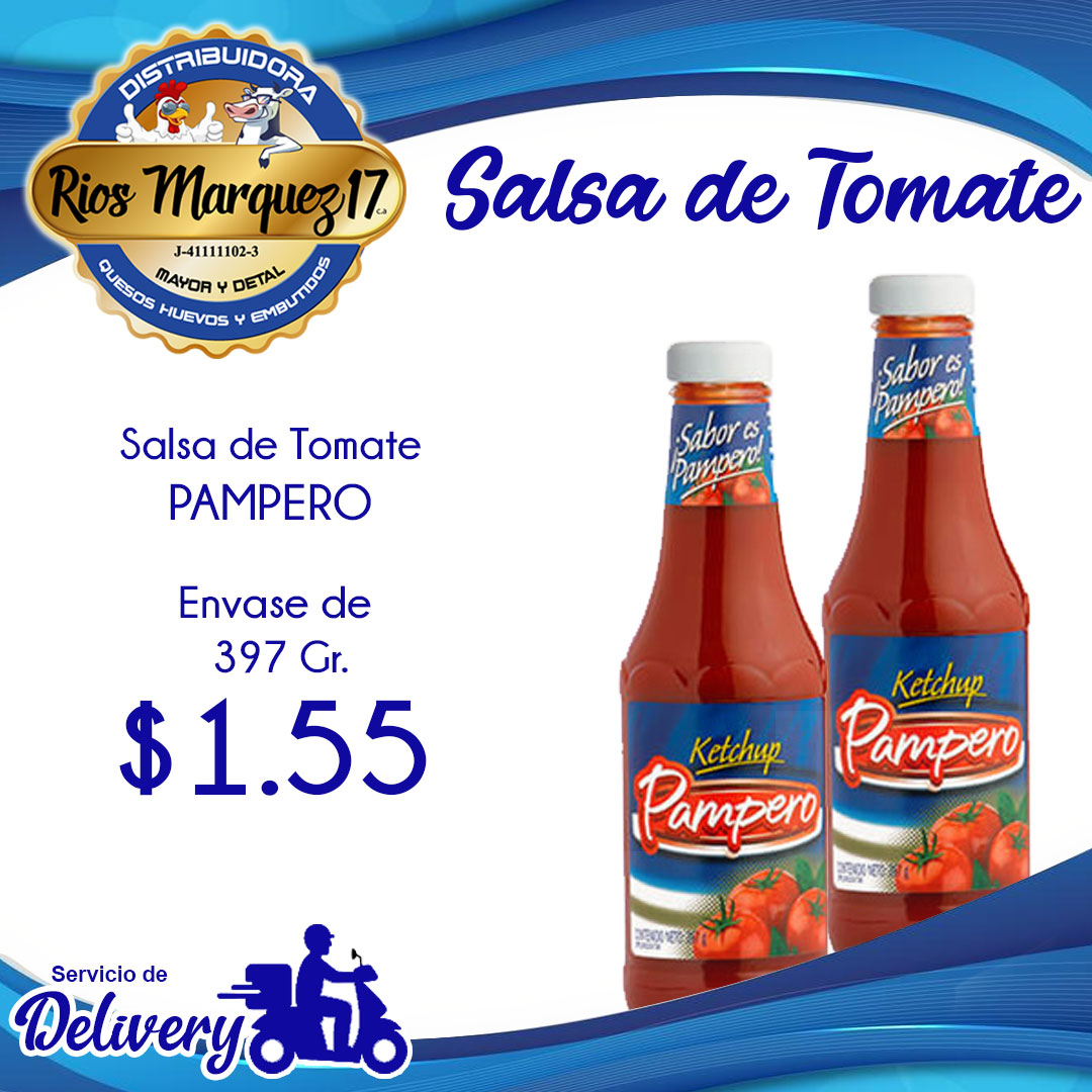 La salsa de tomate Pampero es por tradición una marca líder en el mercado venezolano gracias a su excelente calidad. Es elaborada a base de agua, pasta de tomate, azúcar, vinagre y sal, posee un aroma idéntico al natural de especias. Es perfecta para aliñar las papas fritas, pollo frito, hamburguesas, perros caliente, sándwiches, tostones, pasta o cualquier otro alimento de tu preferencia.